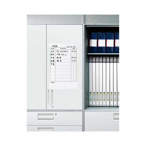 薄くて軽い!光が反射しにくいマット加工タイプだから見やすく、写真も撮りやすい。薄いのでグループワーク時の模造紙代わりにもおすすめです。●寸法/370×600mm●厚さ/0.3mm●材質/表面:PET、裏面マグネットシート●種別/行動予定表●機能/マグネットシートタイプ●表面仕様/マット仕上げ●単位/1枚