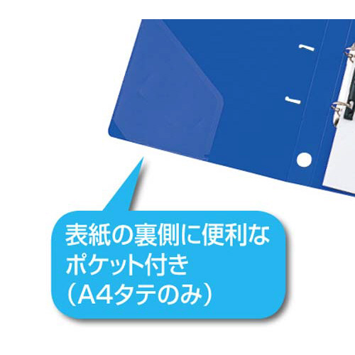 書類の抜き差しがしやすく、書類の端もそろうDリングファイル。表紙の裏側に便利なポケット、棚からスムーズに取り出しができるフィンガーホール付き。両手で開けるリングです。●サイズ/A4タテ●寸法(タテ×ヨコmm)/306×251●寸法/306×251●背幅(とじ厚)/34mm(23mm)●収容枚数/約230枚●カラー/青●種別/不透明表紙●表紙材質/再生PP●表紙厚/1.2mm●リング内径/25mm●穴数/2穴(80mmピッチ)●付属品/紙押さえ具付き●機能/背見出し紙は抜き差し可能●とじ厚/23mm●材質/本体/再生PP50%●仕様/紙押さえ具付き、背見出し紙は抜き差し可能、表紙の裏面に便利なポケット付き●単位/1箱(10冊入)