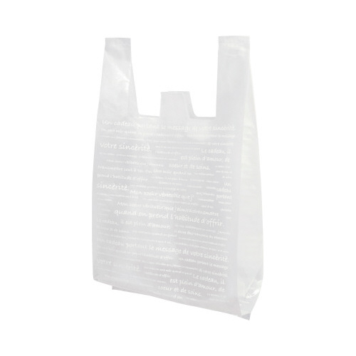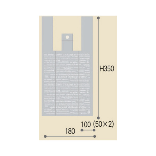 柄付でオフィスでも気軽に使えるレジ袋●サイズ/S●機能/片面印刷、エンボス付●総幅(仕上幅+マチ)×高さ(mm)/280(180+100)×350●カラー/ホワイト(半透明)●材質/高密度ポリエチレン●厚さ/0.016mm●生産国/日本●仕様/A フロスト●単位/1パック(100枚入)