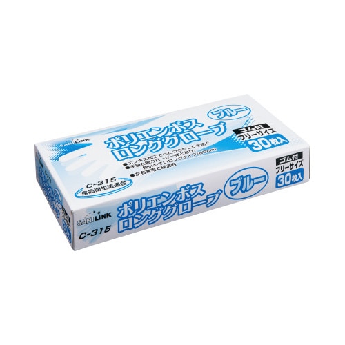 ポリエチエンボスロング手袋 ブルー 30枚入
