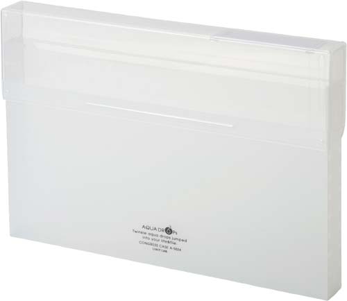 フタが大きく開くので書類の出し入れがスムーズにできます。会議・打ち合わせなど、書類の持ち運びに便利なコングレスケース。タイトル見出し付きなので、案件別、得意先別などにタイトル見出しで管理ができます。●サイズ/A4●寸法/タテ228×ヨコ326×背幅22mm●カラー/乳白●材質/本体・フタ:PP、見出し紙:上質紙、見出しカバー:PET●収容枚数/コピー用紙150枚●種別/薄型●収容幅/15mm●単位/1セット(10冊入)