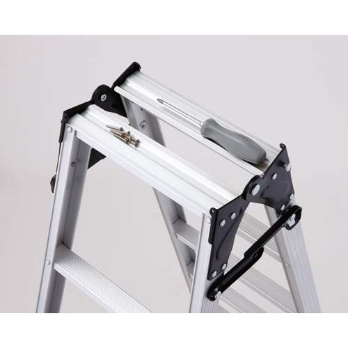 軽量で扱いやすいスタンダードタイプ。天板にちょっとした工具などが置けるトレイ(溝)付き。●天板高さ/170cm●寸法/使用時:幅62×奥行109×高さ170cm、収納時:幅62×奥行17×高さ180cm●材質/アルミ合金、PVC樹脂●質量/6.8kg●耐荷重/100kg●ステップ幅/41mm●蹴上げ寸法/21cm●長さ/(はしご時)356cm●規格/SGマーク、Aマーク●単位/1台