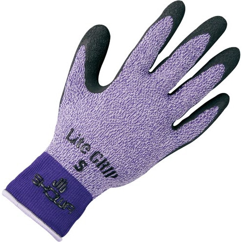 薄くやわらかな使用感で手にフィット!定番グリップの薄手タイプ。●カラー/パープル●サイズ/S●材質/樹脂部:天然ゴム、繊維部:ナイロン・ポリエステルほか●編目密度/13ゲージ●寸法/全長約210×中指約74×掌幅105mm●仕様/オーバーロック加工●単位/1双
