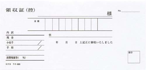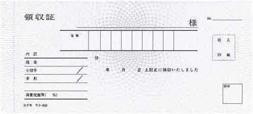 | 商品名 | 複写領収書 紙幣判ヨコ型50組 ノーカーボン×10 |