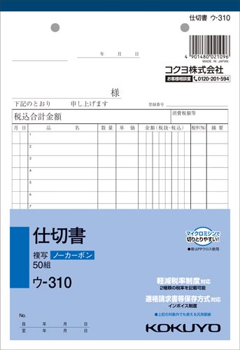 | 商品名 | 仕切書 A5 ノーカーボン ウ-310 10冊 |