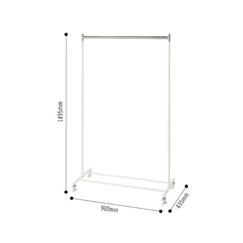 シンプルで使い勝手の良いコートハンガー。3サイズから選べます。●カラー/ホワイト●種別/幅900●外寸法/幅900×奥行435×高さ1495mm●材質/本体:スチール(粉体塗装)、上部ハンガー部:スチール(クロームメッキ)、キャスター:PP●質量/4.1kg●耐荷重/40kg●付属工具/六角レンチ、スパナ●機能/キャスターストッパー機能(2個)●生産国/中国●単位/1台