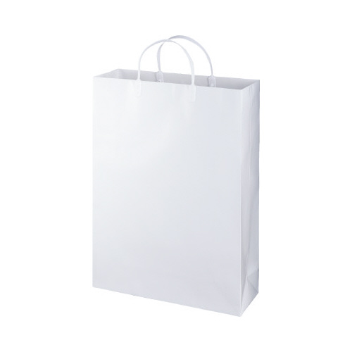 紙製でも丈夫なラミネート加工。汚れにも強い!●サイズ/大●機能/グロスラミネート加工●カラー/ホワイト●材質/コート紙(157g/平方メートル)●持ち手形状/ハッピータック●耐静荷重/約5kg●底ボール紙/有●寸法/幅330×高さ440×マチ110mm●単位/1セット(10枚入×2)