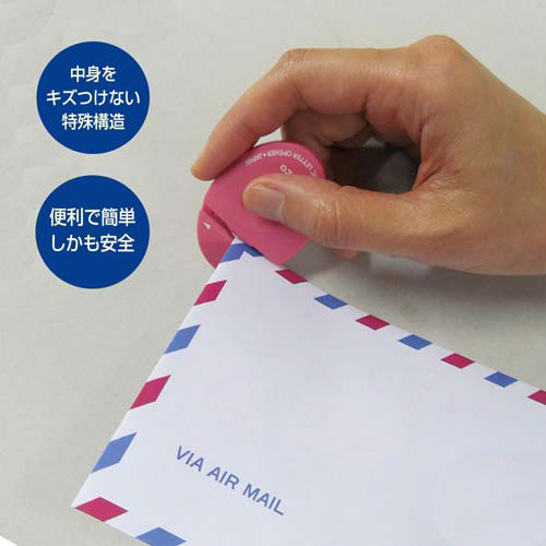 ※封筒の片面のみを切るタイプですので、一枚の紙を通しても切ることはできません。封筒の角がつぶれているとセラミックの刃が刺さらないことがありますので、つぶれてない角を選んで切って下さい。湿ったり濡れたりした封筒は開封できないことがありますので、よく乾かしてご使用ください。本製品の刃はセラミックでできておりますので、ホッチキス針やクリップなどの硬いものにあたったり、こじれた場合にはカケることがありますのでご注意ください。