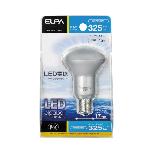 ※表示は設計寿命であり、製品の寿命を保証するものではありません。※高温となる場所でご使用になられると寿命が短くなる場合があります。(推奨使用周囲温度5℃から35℃)※白熱電球とは明るさ、光の広がり方が(配光)が異なります。※LED素子にはバラツキがあるため、同じ形名商品でも商品ごとに発光色、明るさが異なる場合がありますのでご了承下さい。※【返品に関するご注意】開封後はお客様のご都合による返品はお受けできません。