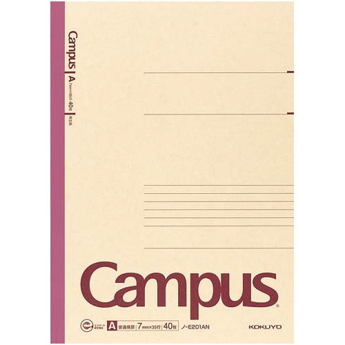 | 商品名 | 再生紙キャンパスノートA4 A罫7mm 40枚×5 |