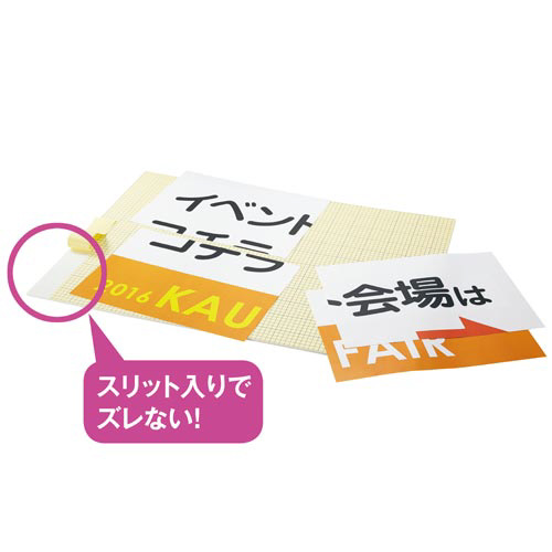 ズレずにキレイに貼れる、はくり紙にスリットが入ったのり付きパネル!紙規格ピッタリサイズなので、仕上げに余分なパネルをカットする作業要らずで作業が早い!●サイズ/A2●寸法/594×420mm●厚さ/5mm●スリット幅/55mm●材質/発泡ポリスチレン樹脂、片面粘着剤付、スリット入りはくり紙●機能/印刷物の規格サイズ●粘着有無/片面粘着剤付●単位/1セット(10枚入×3)