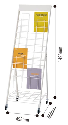 キャスター付で移動に便利!頑丈なつくりとキャスターのロック機能でしっかり使えます。●種別/2列●カラー/ホワイト●外寸法/幅498×奥行560×高さ1495mm●内寸法/1段あたり:幅238×奥行20×高さ180mm●マグネットスペース高さ/100mm●材質/本体:スチール(粉体塗装)、キャスター:PU●質量/9.1kg●耐荷重/(カタログ収納部1段あたり)約1kg、(ストック棚)約2kg●機能/キャスターストッパー機能(2個)●付属工具/スパナ・六角レンチ●生産国/中国●組立必要人数/2人●組立時間/15分●単位/1台
