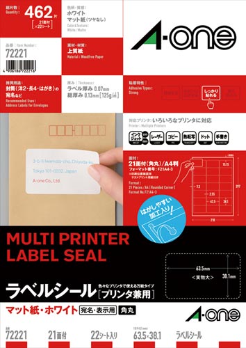 | 商品名 | 上質紙ラベル 兼用 A4 21面角丸 22枚 |