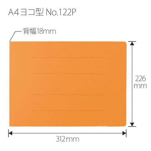 PP製なので汚れにくく、耐久性の高いフラットファイル。●サイズ/A4E●寸法/縦226×横312×背幅18mm●カラー/オレンジ●材質/表紙、とじ具:再生ポリプロピレン(PP)●穴数/2穴●収容枚数/150枚●単位/1パック(10冊入)