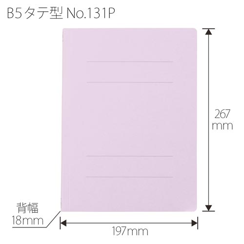 PP製なので汚れにくく、耐久性の高いフラットファイル。●サイズ/B5S●寸法/縦267×横197×背幅18mm●カラー/バイオレット●材質/表紙、とじ具:再生ポリプロピレン(PP)●穴数/2穴●収容枚数/150枚●単位/1パック(10冊入)