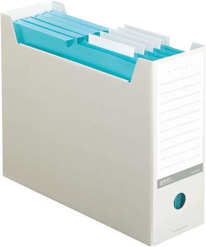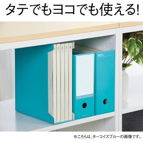 コクヨの〈NEOS〉シリーズ!両側面の切り込みで、縦置き・横置きの2WAYで使える!見出し面は、色分類とタイトル分類のどちらもしやすい機能的なデザインです。●サイズ/A4タテ・ヨコ●カラー/オフホワイト●寸法(幅×奥行×高さmm)/102×317×260●収容幅/95mm●材質/段ボール(古紙パルプ配合)●組立方式/ワンタッチ組み立て式●単位/1パック(4個入)