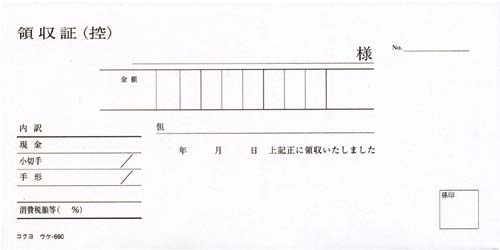 | 商品名 | 複写領収証小切手判ヨコ型 ノーカーボン二色刷10冊 |