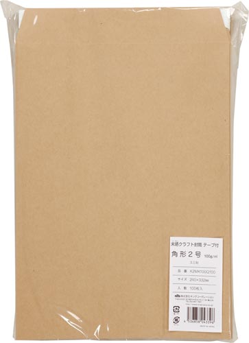 | 商品名 | 未晒クラフト封筒 角2 テープ付き 100枚入 |