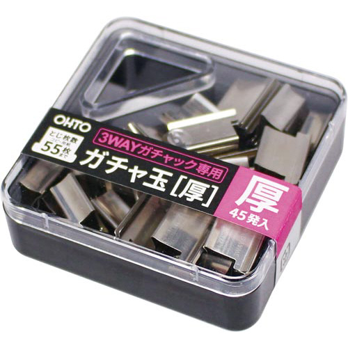 ※【3WAYガチャック】専用のガチャ玉です。ガチャック本体(大)及び(小)サイズには、ご使用いただけません。※表示とじ枚数以上の書類をとじた場合、クリップが開いたままの状態になり再利用できなくなる事があります。また、開いたままの状態になったガチャ玉は、ガチャック本体には入れないで下さい。玉詰まりの原因になります。