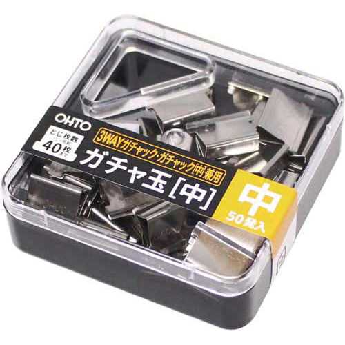 ※【3WAYガチャック】専用のガチャ玉です。ガチャック本体(大)及び(小)サイズには、ご使用いただけません。※表示とじ枚数以上の書類をとじた場合、クリップが開いたままの状態になり再利用できなくなる事があります。また、開いたままの状態になったガチャ玉は、ガチャック本体には入れないで下さい。玉詰まりの原因になります。