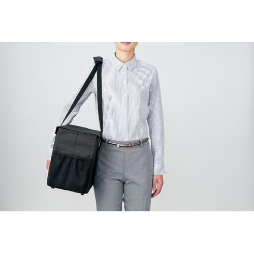 撥水仕様の生地で外出時でも使いやすいミーティングバッグ!持ち手の長さが調節できるから長距離の移動もラクラク!緩衝材入りのポケットや小分けできるポケット付だから、外出先でも簡単に出し入れができます!●種別/ラージフラップフタ付タイプ●サイズ/ラージ●カラー/外側ブラック内側ブラック●外寸法/幅410×奥行205×高さ290mm●内寸法/幅400×奥行195×高さ280mm●材質/本体:ポリエステル(撥水加工)、芯材:板紙・発泡スチロール●耐荷重/7kg●単位/1セット(10個入)