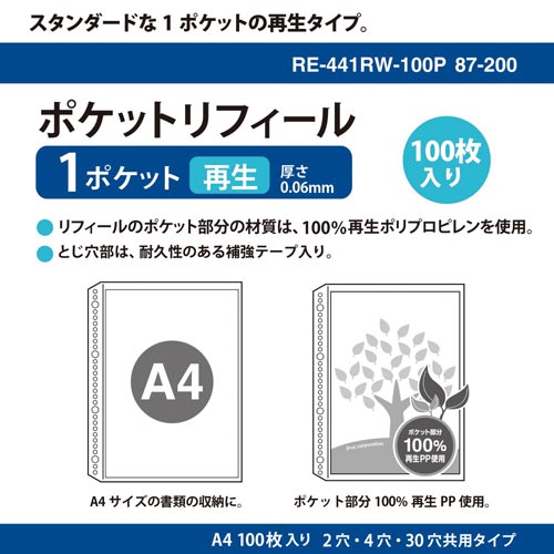 | 商品名 | リフィール A4 1ポケット再生PP 100枚入 |