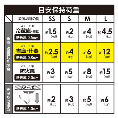 | 商品名 | マグネットフックゼロスライドL黒12kg 5個 |