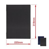 メニュー数にあわせて簡単にリフィルの追加や交換ができます。お店の雰囲気を大切にするシンプルデザインになっています。●寸法/本体サイズ/W225×D318mm(収納時) 本体サイズ/W455×D318mm(見開き時) 中紙サイズ/W210×D297mm(A4サイズ)●カラー/黒●質量/423g●材質/PVC●仕様/付属品・・・リフィルシート:1枚 リフィル固定ピン:2本 *リフィルシートを追加購入して頂くことでページ数を増やして使用できます。●単位/1冊