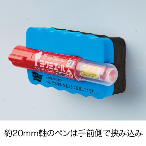 ※直径約15mmと約20mmの2サイズの丸軸ペンが格納できます。※マグネットによる取り付けは、ホワイトボード面の仕様により、保持力が十分に発揮できない場合があります。※ホワイトボードマーカー専用のイレーザーです。※この商品は製造上色味に若干のバラつきがある場合がございます。※こちらの商品は、メーカーの都合により商品デザイン、パッケージが予告なく変更される場合があります。