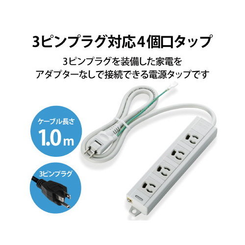 | 商品名 | OAタップ3ピン対応 4個口 マグネット付き 1m |