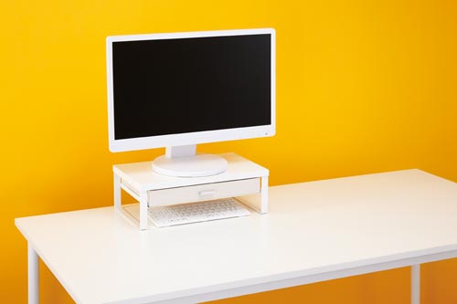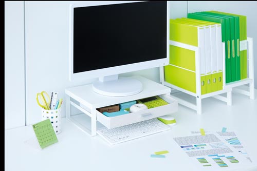 電卓など事務小物がスッキリ収納できる机上台。引出しはA4サイズまで収納可能です。コンパクトなデスクにも置きやすい幅390mmのスリムタイプが新登場。●種別/幅390mm●カラー/ナチュラル●寸法/幅390×奥行240×高さ130mm●引出内寸法/幅(小)110(大)330×奥行220×高さ36mm●材質/天板:メラミン化粧板、フレーム:スチール、クッション:シリコン、引出:ポリエステル・板紙●質量/2.2kg●耐荷重/本体:約15kg、引出:約0.5kg●組立方式/組み立て式(プラスドライバーが必要です)●付属品/六角レンチ●下肢空間寸法/幅346×高さ60mm●単位/1セット(3台入)