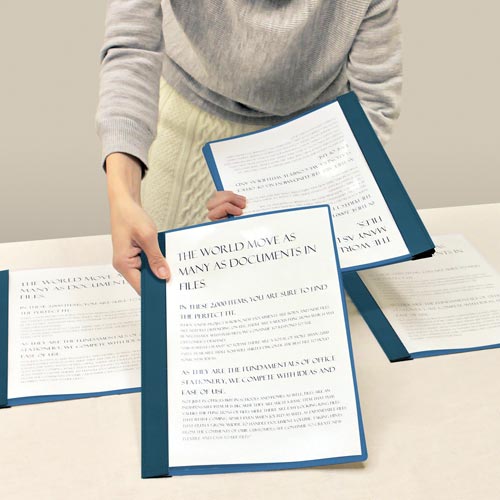 プレゼンテーションに最適!透明表紙タイプ。●サイズ/A4タテ●寸法/幅307mm×奥行330mm×背幅12mm●カラー/ブルー●材質/表紙:表:軟質ポリオレフィン0.3mm(内ポケット:軟質ポリオレフィン0.2mm)、裏:PP0.3mm、脊:軟質ポリオレフィン0.3mm●穴数/2穴●最大収容枚数/120枚●単位/1冊