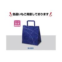 菓子・雑貨店など幅広く利用される、柄入りの手提げバッグです。重ねてもかさばらない平紐を使用。上品で美しい和風デザイン。底のマチ幅が広いので厚みのある商品を入れるのに適しています。業務用50枚仕立て。●寸法/幅220mm×マチ130mm×高さ230mm●材質/晒クラフト紙(80g/平方メートル)、持ち手:紙平紐●単位/1包(50枚入)