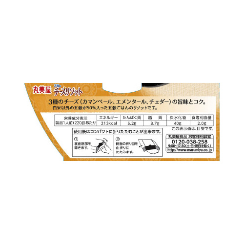 | 商品名 | 丸美屋レンジで簡単!五穀ごはん3種のチーズリゾット※ |