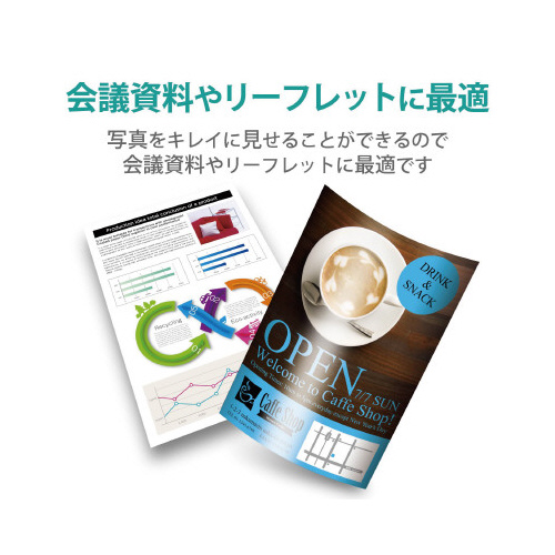 薄くてかさばらない、優れた速乾性の光沢紙。プレゼン資料や会議資料など写真入り資料に最適な光沢用紙です。●白色度(ISO)/103%●坪量/150g/平方m●適合機種/インクジェット用●紙厚/180μm●単位/1冊(20枚入)