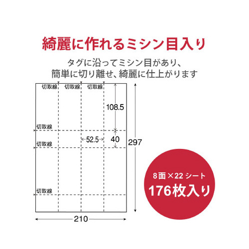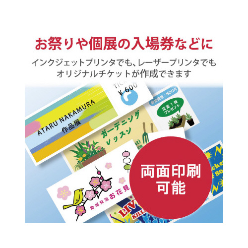 インクジェットプリンタだけでなく、レーザープリンタでもオリジナルのチケットが簡単に作成できるチケットカードです。●紙厚/120μm●坪量/105g/平方m●適合機種/インクジェットプリンタ、レーザープリンタ●両面印刷/可能●単位/1冊(176枚入)