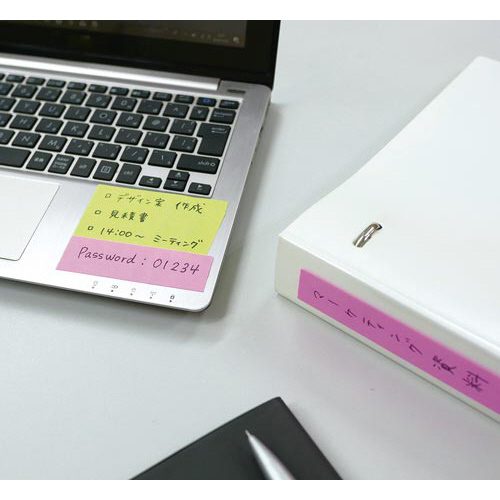 ※感熱紙、ノーカーボン紙などの特殊紙に貼ると、文字が消えたり、のりが残りますのでご注意ください。