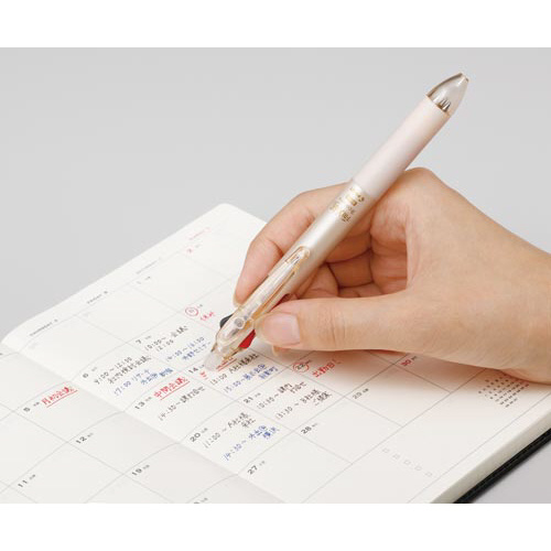 ※専用ラバーでこすると色が消えます。※証書類・宛名など消えてはいけないものには使用しないでください。※直射日光の当たる場所や、高温になる場所に置かないでください。60℃以上になるとインキが無色になります。※-10℃前後になると消去した筆跡が戻る場合があります。※紙以外への筆記には使用しないでください。※感熱紙など紙の種類や、印刷物の特性によっては消去に不向きな場合があります。※消去用ラバーに汚れがついたまま擦ると、紙面が汚れます。ふき取るなど汚れを落としてからお使いください。