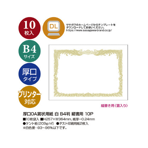 商品名 厚口OA賞状用紙 白 B4判縦書用