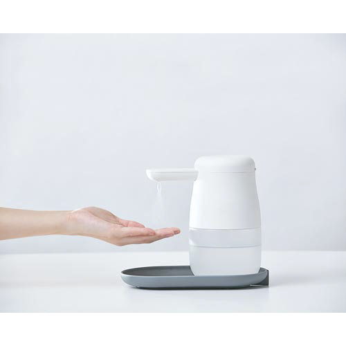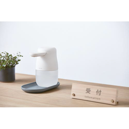 コンパクトで場所を選ばずに使える自動手指消毒器。ポンプ式に比べ、直接機械に手を触れずに消毒ができるため、衛生的に使用可能!単3形アルカリ乾電池4本で動くので、コンセントのない場所でも使用できます。●寸法/約幅102×奥行162×高さ180mm(本体のみ)、約幅120×奥行212×高さ188mm(トレー使用時)●質量/約330g(トレー、消毒液、乾電池を除く)●材質/本体・ボトル・トレー:PP●種別/約500ml●電源/単3形アルカリ乾電池×4本(別売)●噴射形状/スプレー状●噴射量/約0.5ml●付属品/トレー、メッセージパネル、パネルスタンド、取扱説明書●保証期間/1年●動作環境/温度:5から35℃、湿度:30から80%(非結露)●単位/1台