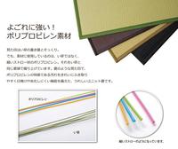 置き畳です。表地にはポリプロピレンを細いパイプ状にして織込んだ生地を使用しています。お子様の部屋に、ペットのいるご家庭に最適な商品です。軽量タイプなので、持ち運び、設置、片付けなども楽にできます。●材質/表:ポリプロピレン100%、中材:ヒバ硬綿(15mm)、裏:連結用ジョイント付、ヘリ:PP、PE●寸法/タテ820×ヨコ820mm●厚さ/約17mm●単位/1セット(6枚入)