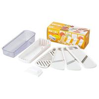 色々な下ごしらえが簡単にできます。上蓋がおろし台になります。滑り止めが付いていますので安定しています。ホルダーも付いているので安心してスライスできます。専用ケースにコンパクトに収納できます。●寸法/パックサイズ:縦238mmX横90mmX高さ86mm●本体/縦235mm×幅83mm●質量/414g●材質/金属部:ステンレス鋼 蓋:AS樹脂 ホルダー:ポリプロピレン その他:ABS樹脂●用途/野菜の千切り、つま切り、スライス、おろし等●生産国/日本●仕様1/耐熱温度 ホルダー:110度 蓋、その他部材:80度●仕様2/耐冷温度:マイナス20度●仕様3/セット内容:千切り用、つま切り用、おろし用、スライス用、ケース、おろし台兼用蓋、ホルダー×各1●単位/1個