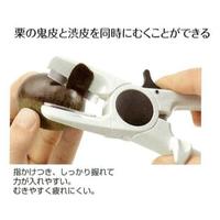 ※使用方法:1、指かけに親指をかけて持ちます。※2、左手に栗を持ち、刃を開き押え刃で栗を押えて固定したらハンドルを握り、切り刃で栗の皮を切り込みます。栗の座の部分は堅いので頭の方からむき始めると良いでしょう。※3、栗の皮の繊維にそって、切り刃を押え刃に寄せるように皮をむきながら移動します。※4、鬼皮と渋皮を同時にむくことができます。栗の表面に残った渋皮は刃先部分を少しずつ動かすようにしてむきます。※5、使用後は刃が開かないようにロックしてください。※刃部は鋭利な刃物の為、取扱いには充分注意をお願いします。※保管時は水気をよく切って保管して下さい。※【返品に関するご注意】この商品はお取り寄せ品のため、お客様のご都合による返品はお受けできません。