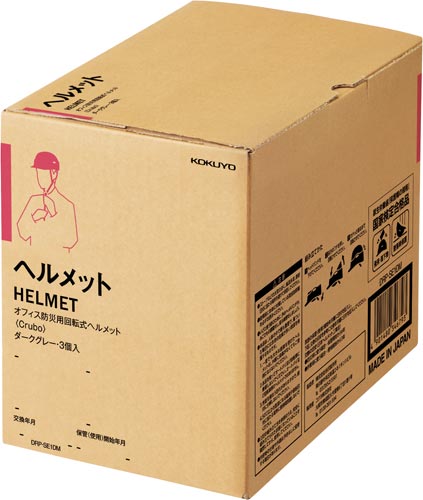 オフィスでの収納と使用に適した回転式ヘルメット。オフィスの什器にきっちり保管できるヘルメット同色3個入り。●寸法/奥行き317mm×幅209mm×高さ260mm●材質/ケース:段ボール、ヘルメット:ABS●質量/1833g●その他特記事項/頭のサイズ:47-62cmまで対応●セット内容/回転式ヘルメット<Crubo>×3個●製品色/ダークグレー●単位/1セット(3個入)