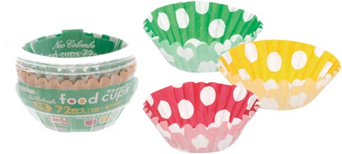 電子レンジ対応!お弁当が映える、ドットデザインのおかずカップです。●寸法/高さ2.5mm、底径4.0mm●カラー/3色アソート●材質/ポリエチレンテレフタレート●耐熱温度/180℃●生産国/中国●単位/1パック(72枚入)