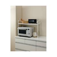 レンジの上が収納空間に早変わり。ほとんどのレンジが収まるワイドタイプ。レンジ幅にピッタリ合わせられる伸縮式(55から85cm)で、高さも34・39・44・49cmの4段階に変えられます。●寸法/約幅550から850×奥行342×高さ580mm●質量/約3700g●材質/棚板・フレーム・伸縮パイプ:スチール(エポキシ焼付塗装)、固定ビス:スチール、調節ネジ:ABS樹脂、パイプキャップ:ポリプロピレン●耐荷重/約10kg●原産国/中国●単位/1台