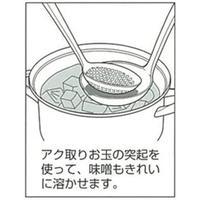 アクの上にお玉を浸すだけで、突起部分に吸着。(社)婦人発明家協会主催 第37回「なるほど展」特賞受賞●寸法/商品サイズ:縦250mmX横73mmX高さ39mm●質量/30g●材質/本体:ポリエーテルイミド●用途/アク取りお玉●生産国/日本●仕様1/耐熱温度:204度●仕様2/耐冷温度:-20度●仕様3/食器洗浄機使用可能●単位/1本