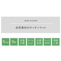い草のキッチンマットです。化繊の物と比べ、汚れにくくシミになりにくいです。い草自体が持つ油分により汚れを弾くので洗う必要がなく長くご使用いただけます。裏地は丈夫でクッション性があり滑りにくくしました。●寸法/タテ430×ヨコ1800mm●材質/表:い草(九州産)裏:ウレタンフォーム6mm、●カラー/ネイビー●生産国/日本(純国産)●単位/1枚