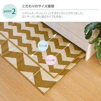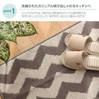 システムキッチンにも使用できるサイズです。目付を上げることで弾力のある優しい踏み心地に仕上げました。汚れた際は洗濯機でも洗えるため清潔にご使用いただけます。(洗濯時はネットを使用してください)●寸法/タテ450×ヨコ2520mm●材質/表:ポリプロピレン100%、裏:エチレン系樹脂(滑りにくい加工)●カラー/グレー●生産国/中国●単位/1枚