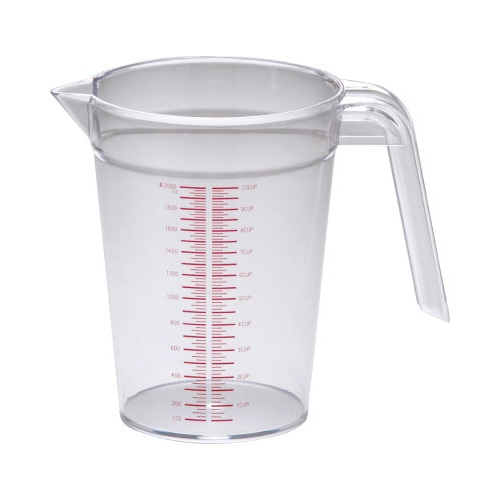 軽くて扱いやすいプラスチック製メジャーカップ。●容量/2000cc●材質/ポリカーボネイト●質量/370g●耐熱温度/-30から130℃●生産国/中国●直径×高さ/176×207mm●最小目盛/100cc●単位/1個